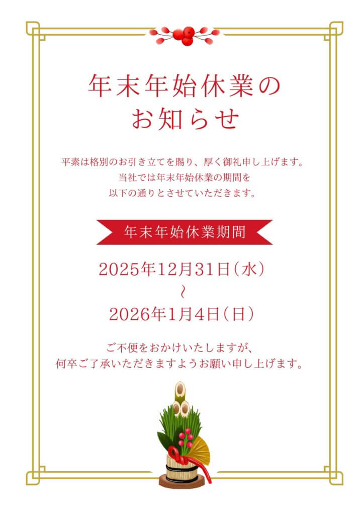中小企業にはなにかと大変厳しい状況ですが、皆様のおかげでなんとか1年無事に終わりますことを心より感謝申し上げます。